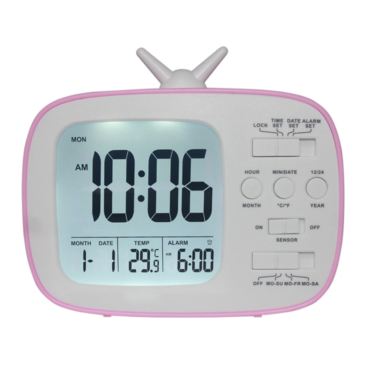 Funksjoner som gjør din Digital vekkerklokke i retro TV-design uunnværlig