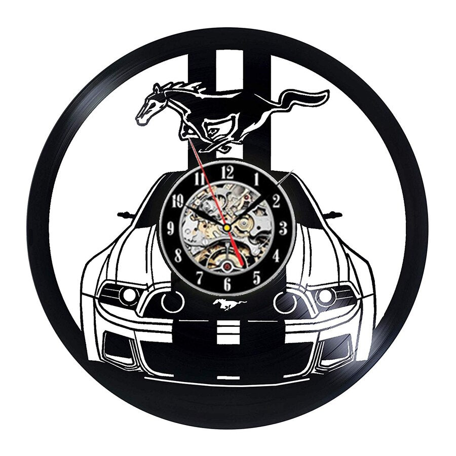 Unikt Ford Mustang bil vinylplate veggklokke for bilentusiaster