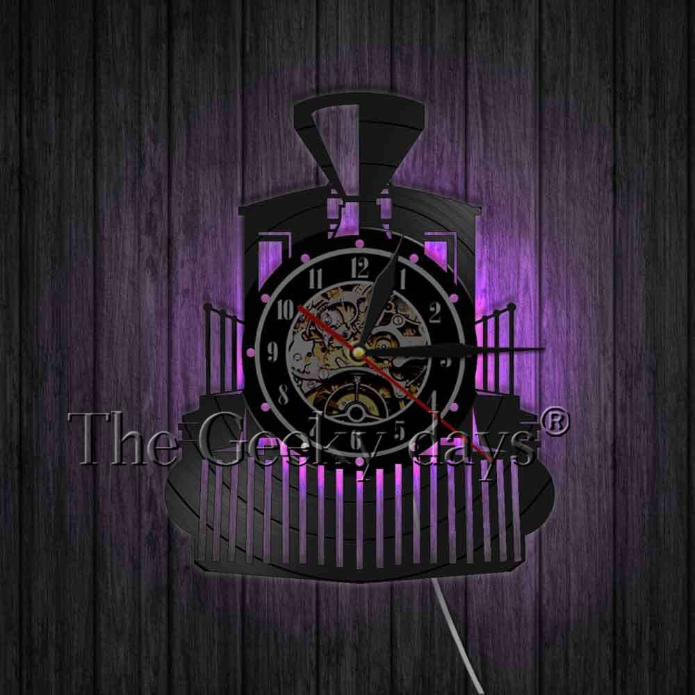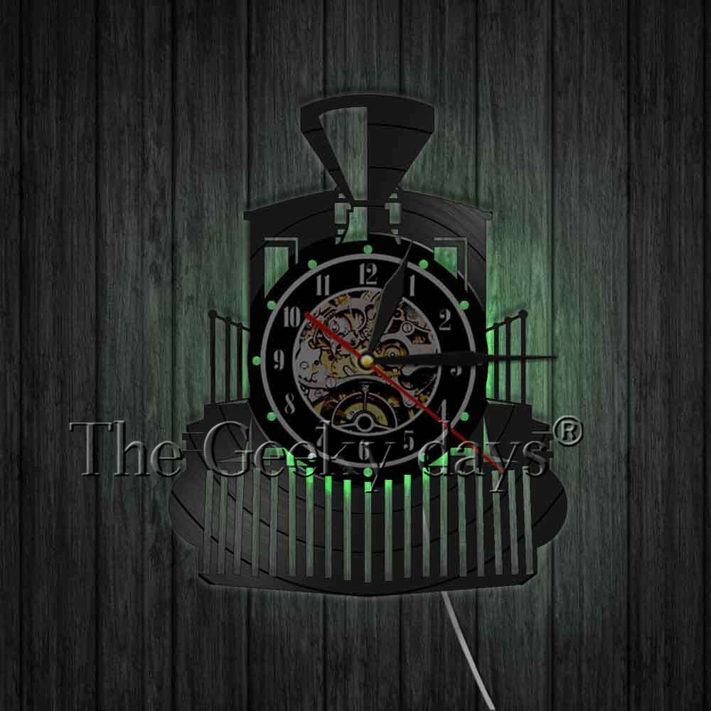 Gammelt lokomotiv vinylplate veggklokke: Fordeler og egenskaper