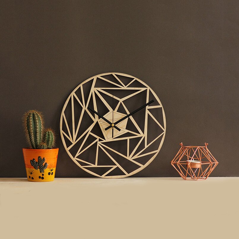 Kjøp din Geometrisk veggklokke i lyst tre i dag!