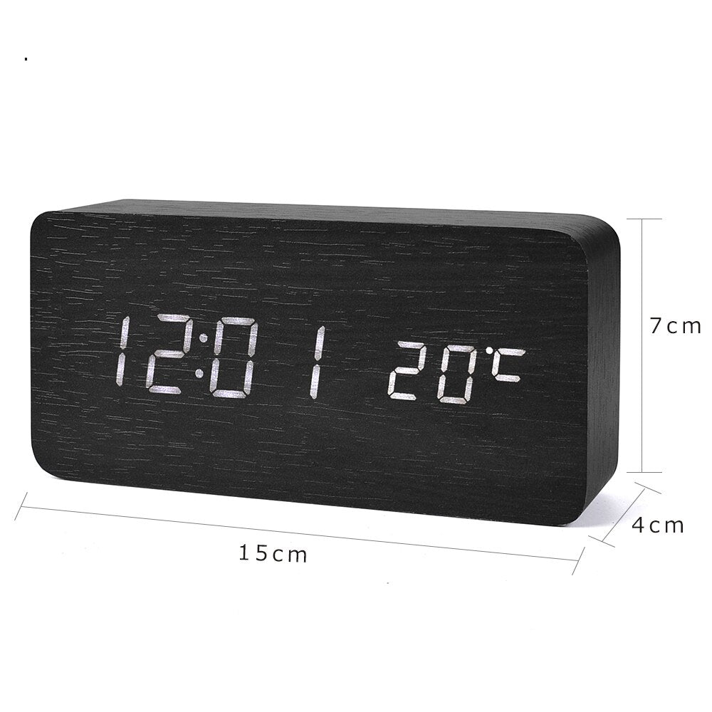 Lei av kjedelige vekkerklokker? Vår klassiske digitale vekkerklokke med temperatur er mer enn bare en klokke; det er et stilig tilbehør til ditt hjem eller kontor. Med sitt elegante design som minner om tre og et tydelig grønt LED-display, passer den perfekt inn i ethvert moderne interiør. Denne vekkerklokken er ikke bare praktisk for å holde oversikt over tiden, men viser også romtemperaturen, slik at du alltid har et behagelig miljø.