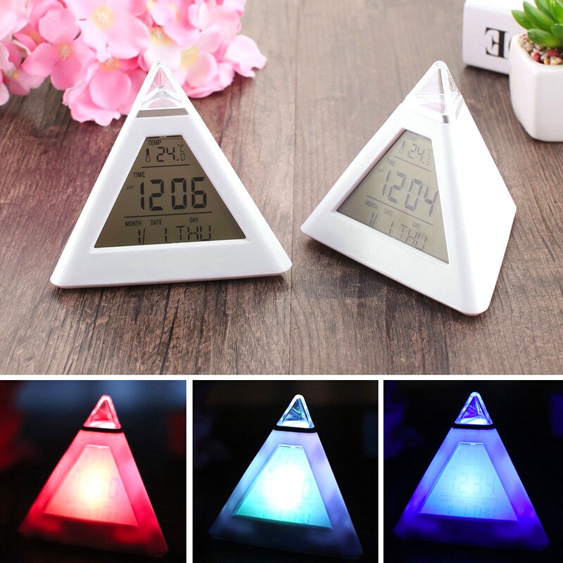 Gjør deg klar til en bedre start på dagen med denne pyramideformede vekkeklokken med fargeskiftende lys!