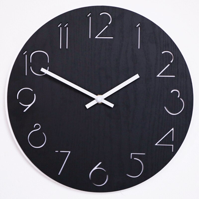 Den perfekte Svart veggklokke i tre med utskårne tall for ditt hjem.