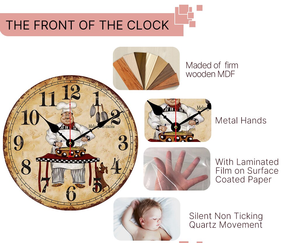 Opplev eleganse og funksjonalitet med vår Vintage veggklokke i tre, patchwork. Designet for å forskjønne hjemmet ditt og holde tiden med stil, kombinerer den raffinert design med praktisk bruk.