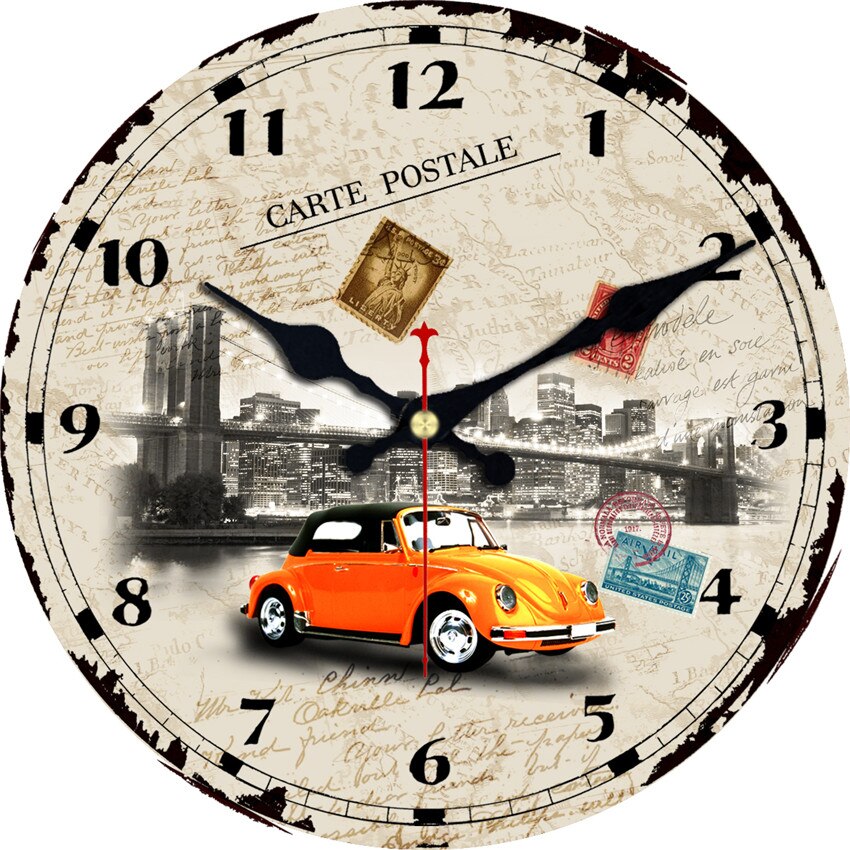 Opplev eleganse og funksjonalitet med vår Vintage veggklokke med Paris og bilmotiv. Designet for å forskjønne hjemmet ditt og holde tiden med stil, kombinerer den raffinert design med praktisk bruk.